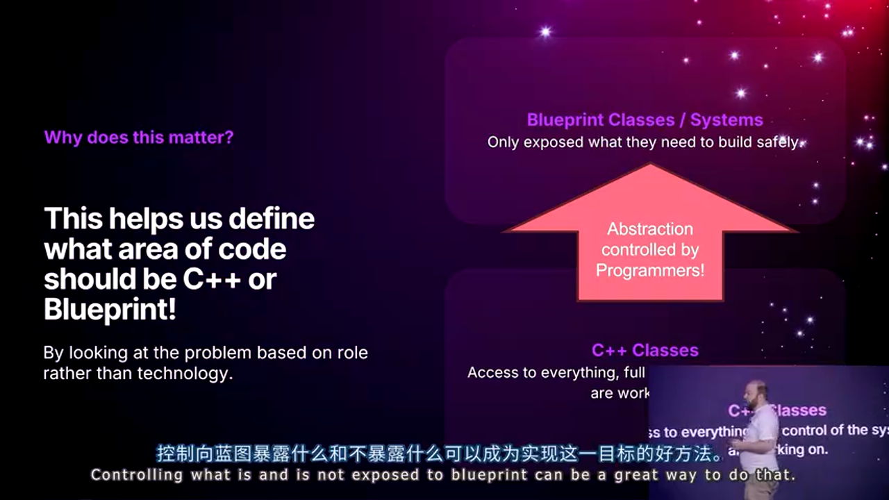 3. Blueprint与C++的协作哲学 - 技术差异映射职能边界 - 控制边界:C++封装核心逻辑,Blueprint提供灵活性 - 始终用C++创建基类