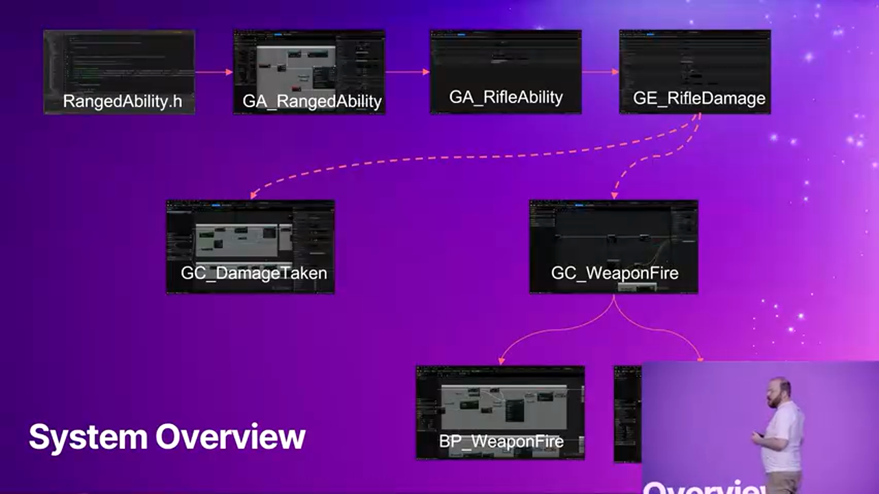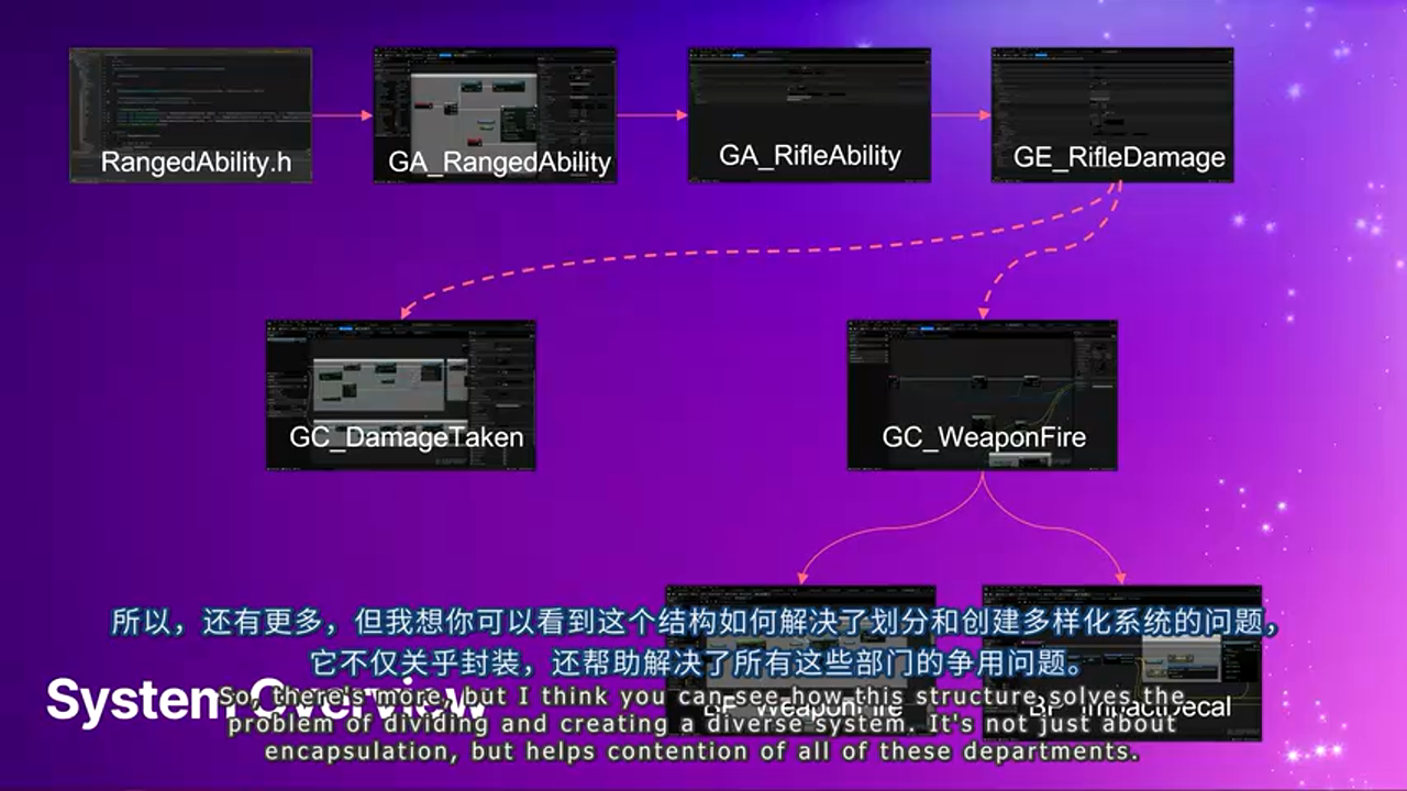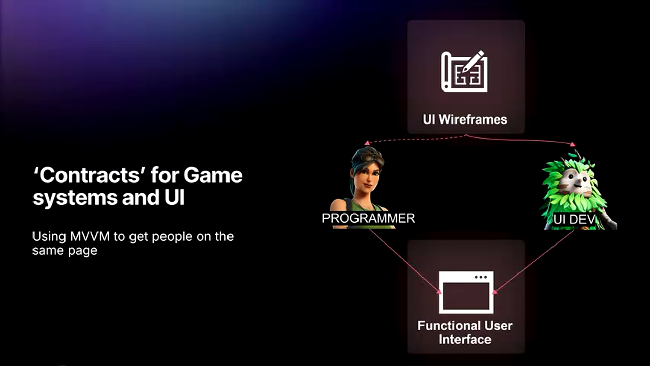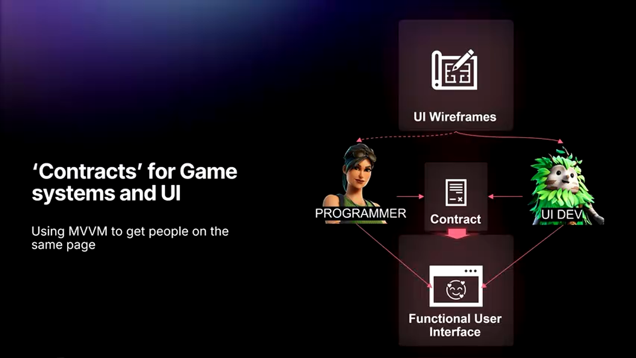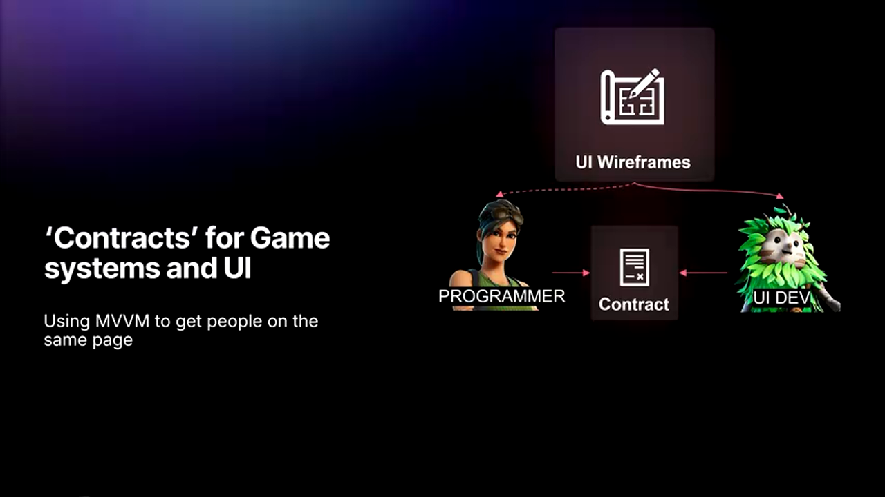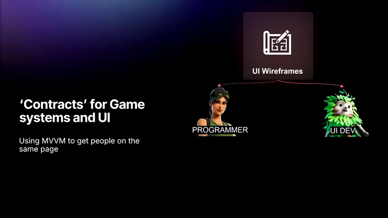 4. 系统设计减少资产竞争 - 分层架构:不同职能在不同层级工作 - GAS案例:C++基类 → Blueprint流程 → 数据专用BP → Gameplay Effect/Cue - UI开发:MVVM模式实现前后端解耦