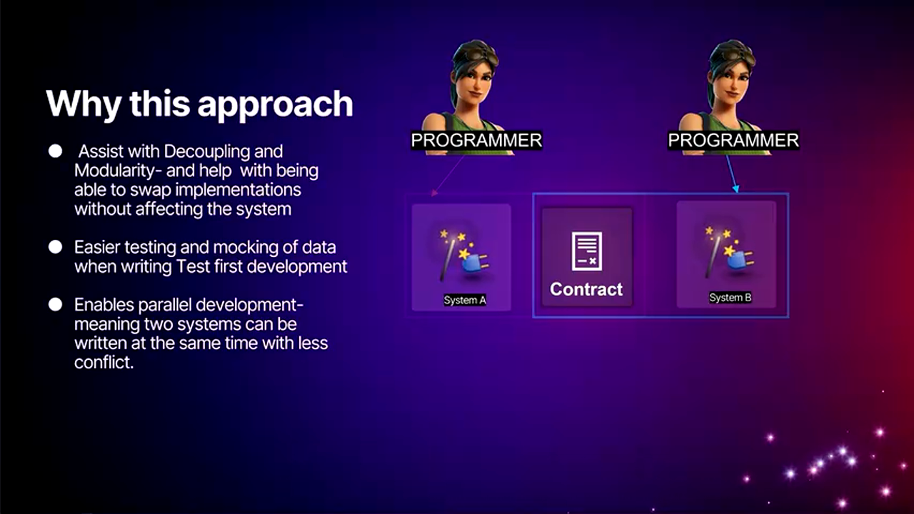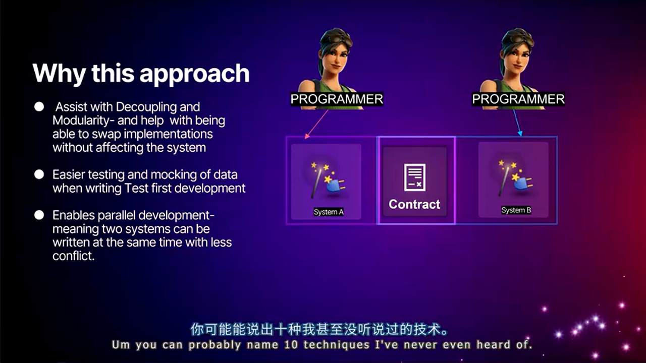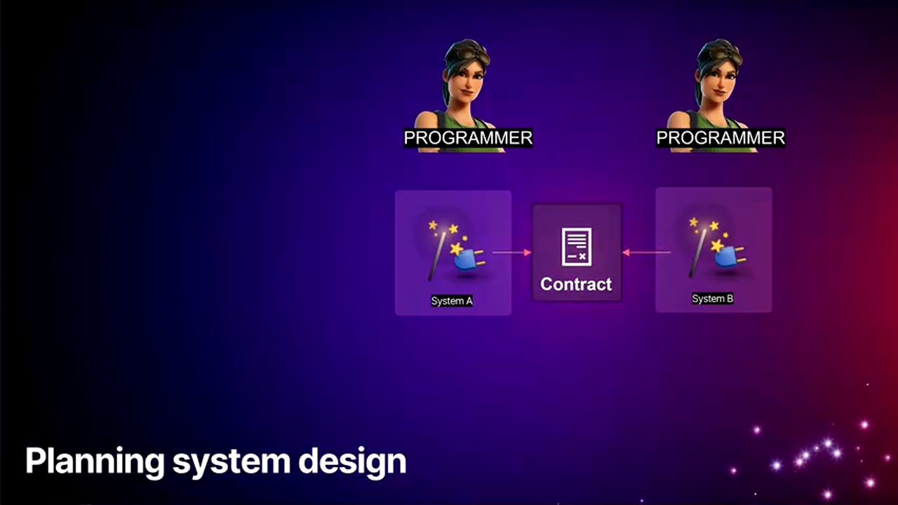 记得之前的MVVM吗?在概念上,我们可以通过定义这些插件将如何通信来做同样的事情——为每个系统制定团队可以订阅的契约。