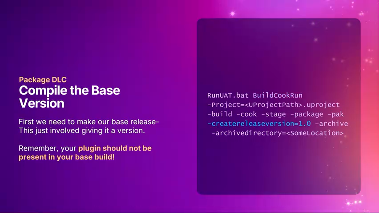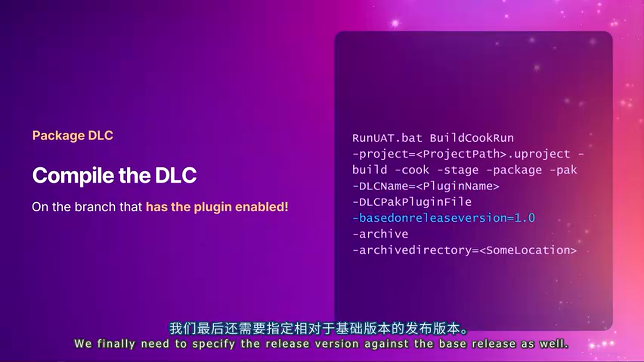 切换到DLC分支,再次运行BuildCookRun,但这次指定要构建的DLC(插件名称)。