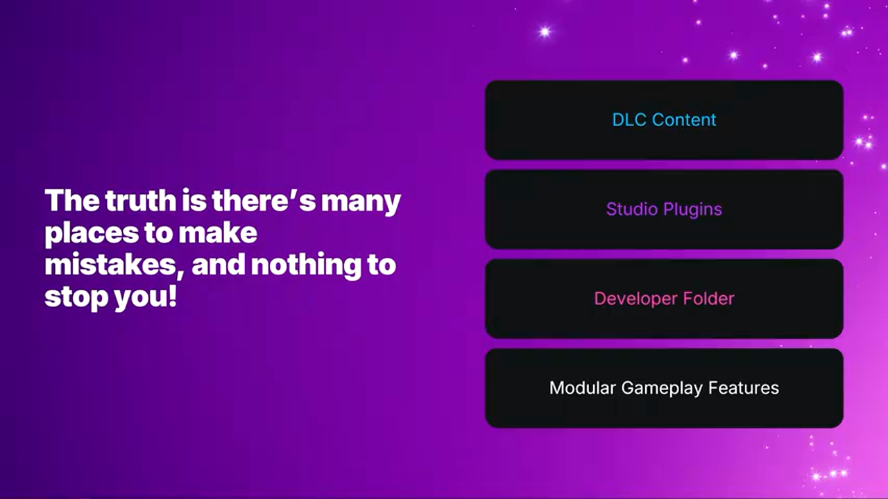 坑5:项目后期才考虑DLC - ❌ 错误做法:先做完游戏再想DLC怎么加 - ✅ 正确做法:技术预研阶段就规划数据结构和打包策略
